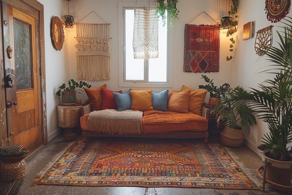 - Osez les motifs ethniques : Pour renforcer l’esprit bohème, choisissez des textiles avec des motifs inspirés de différentes cultures autour du globe. Veillez cependant à harmoniser l’ensemble pour ne pas alourdir la décoration.