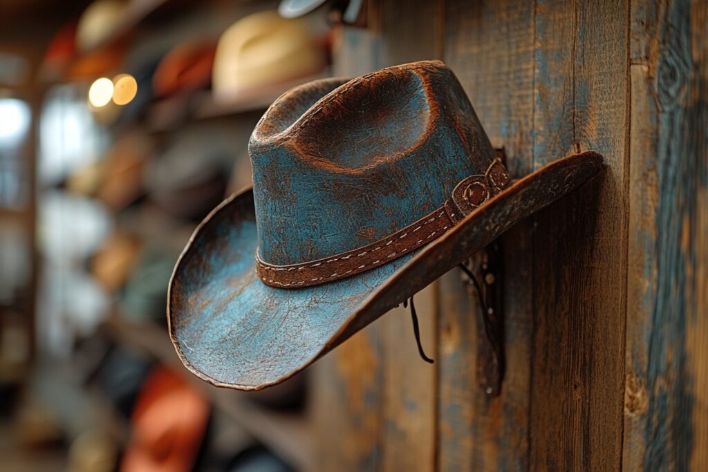 - Fixation murale : Fixer un ou plusieurs chapeaux de cowboy au mur permet de créer un effet galerie percutant. Pour ajouter du caractère, posez-les sur un fond en bois brut ou un cadre de fer forgé.