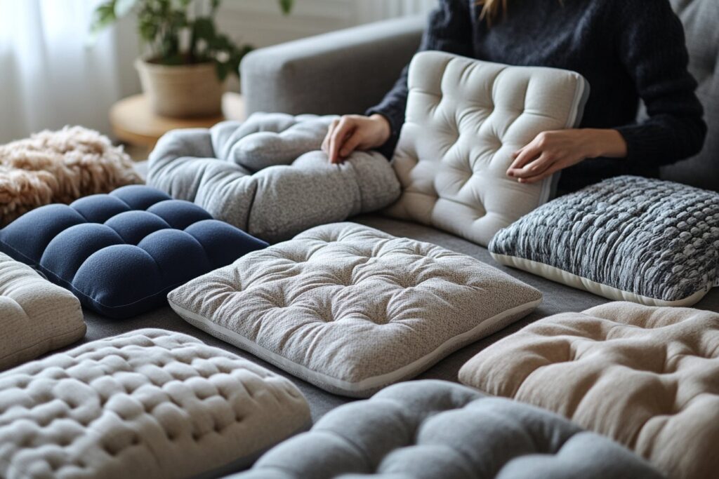 L’épaisseur et fermeté du coussin sont parmi les premiers éléments à considérer. Un bon coussin doit être assez ferme pour garder son intégrité structurelle tout en étant suffisamment doux pour offrir du confort. Trop mou, il risque de s’affaisser sous le poids, tandis qu’un coussin trop dur peut causer de l’inconfort.
